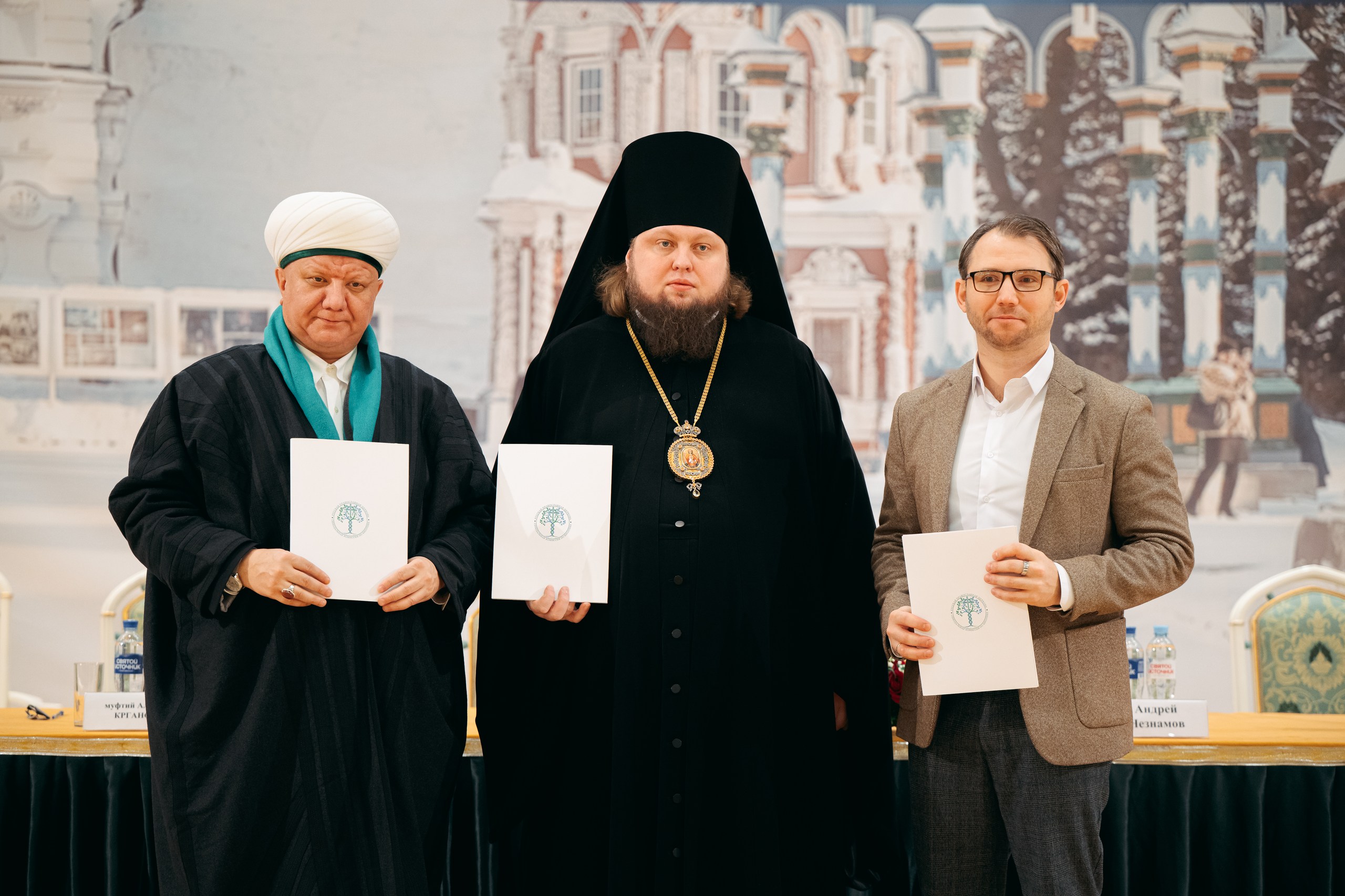 епископ Петергофский Силуан; председатель Духовного собрания мусульман России муфтий Альбир Крганов; председатель национальной Комиссии по реализации Кодекса этики в сфере ИИ Андрей Незнамов. Раввин Аарон Юрьевич Гуревич — руководитель департамента Федерации еврейских общин России по взаимодействию с правоохранительными органами — принял участие в подписании соглашения в заочном формате.